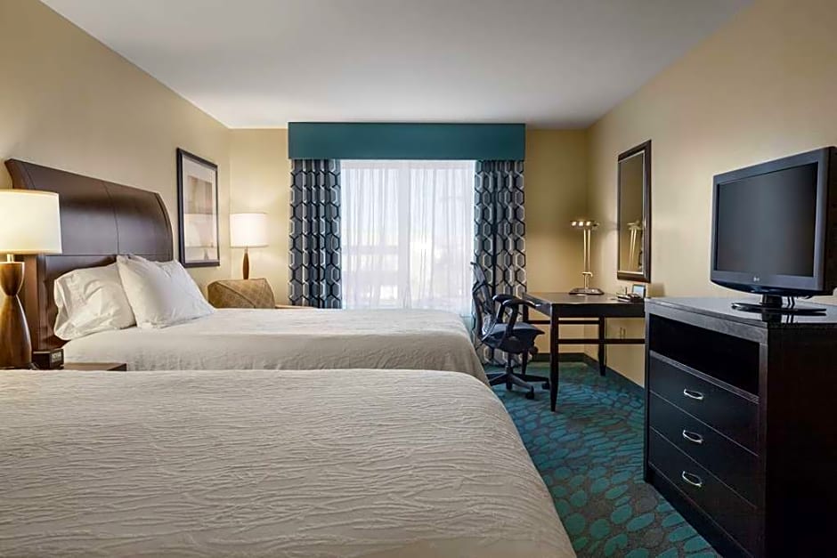 This mobility and hearing accessible standard room features two queen-sized beds, and an accessible tub. The room also has a visual alarm, and notification devices for the doorbell or door knock and incoming telephone calls. Grab bar in tub with attached accessible seating, lowered vanity in bathroom, and lowered closet shelf. And the pursuit of the perfect night's stay continues with new amenities including the bed, chair, and television. The ergonomic chair is good for your back and better for work. Enjoy your favorite television show on our 32-inch HDTV. There's also a microwave, refrigerator and Keurig coffeemaker to help you feel at home. And for conducting business, our rooms ensure your productivity thanks to the spacious work desk, two telephones with dataport and voicemail and complimentary WiFi. Any corresponding photo may not reflect the specific accessible room type or room feature.